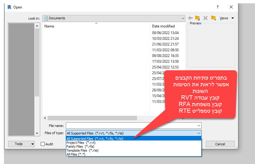 קובץ עבודה בסיומת RVT זהו קובץ העבודה שלכם